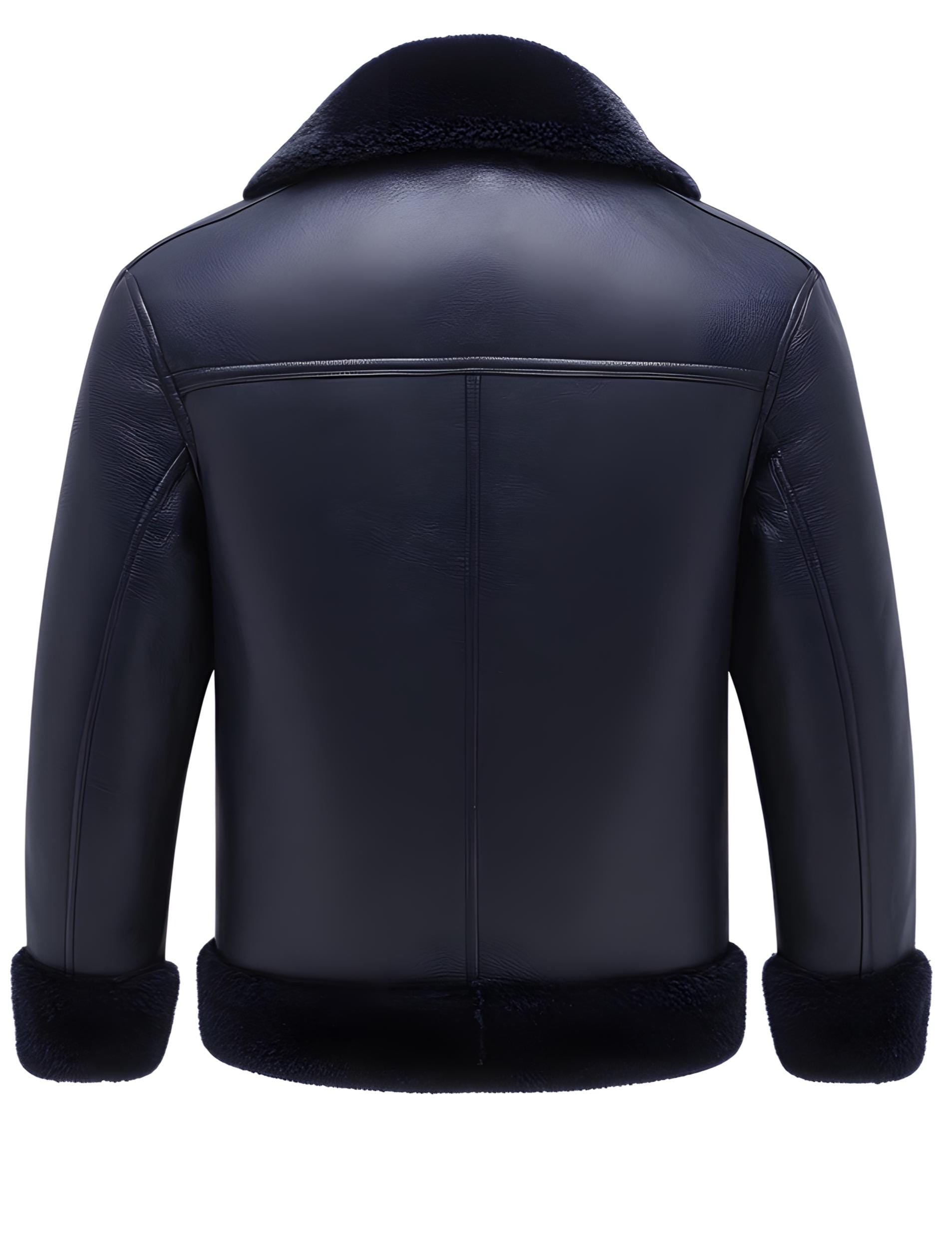 Men's Dark Blue Shearling Leather Jacket – Real Fur Collar Side Pockets By Leather Chloride