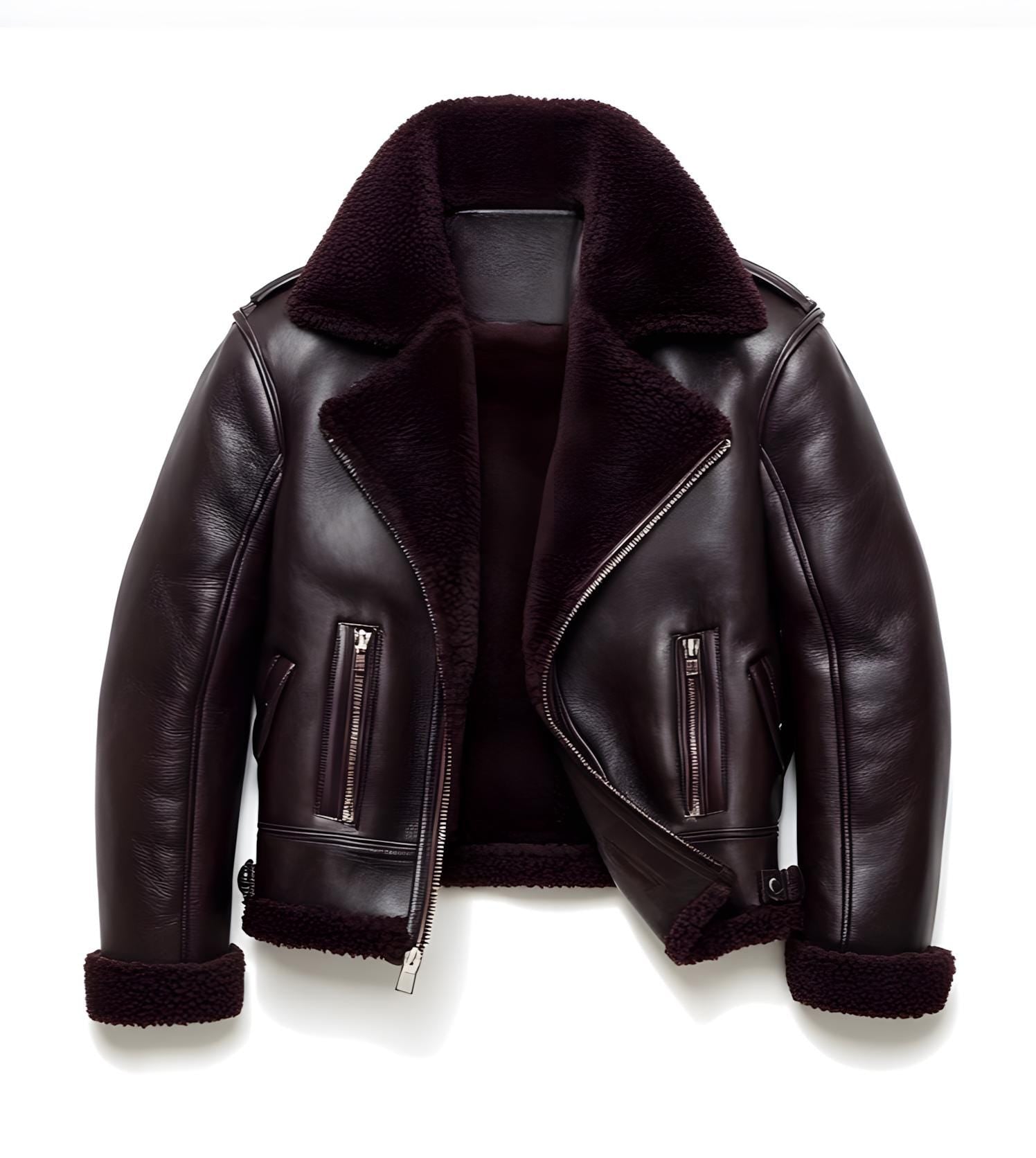 Men's Maroon Shearling Leather Jacket – Real Fur Lining Zippered Pockets By Leather Chloride